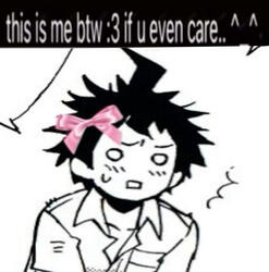 | Likes/Intrests Danganronpa, TBHK, ALNSTG , FNF, DP, ocxcanon, Drawing, Gaming, Anime, music, cosplaying, DDLC, MD, Demon slayer Vocaloid, fnaf, Saiki K, Sally Face, Pjsekai, Genshin, MHA, Blue exorcist,Omori, BSD, etc | Dislikes/Dni real/fictional minor sexualizers, toxic komahina & Saiouma shippers, overly rude w our a reason, ppl who outright bash on my interests/comfort characters/ships, MURDER DRONE PANIC AU ,, a certain someone named Ghostzi,, racists, transphobic etc. |